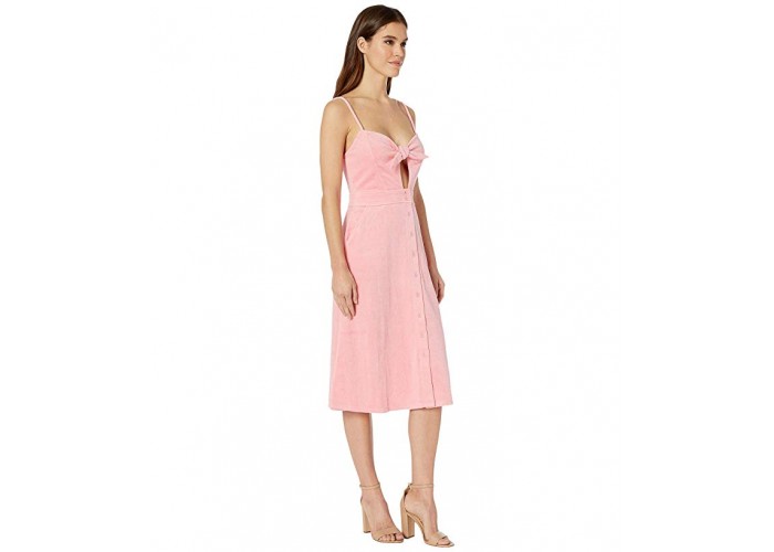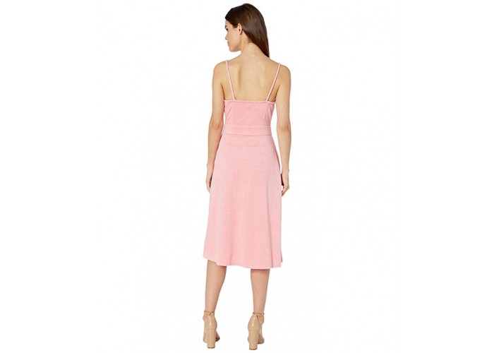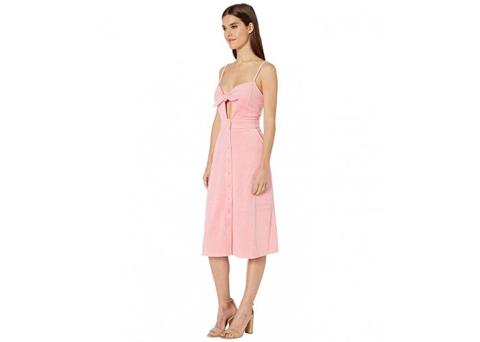 Женское прямое платье из велюра под стрейч от популярной марки Juicy Couture. Длина ниже колена, на тонких бретелях, спереди украшено бантом.