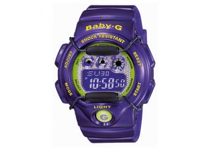 Спортивные женские часы от знаменитого японского бренда Casio. Модель из коллекции 2019 года - BG-1005M-6ER, корпус выполнен из пластика, ремешок из прочного каучука, механизм кварцевый. Часы показывают, помимо времени, число, месяц, день недели. Встроены функции - будильник, ежечасный сигнал, второй часовой пояс.