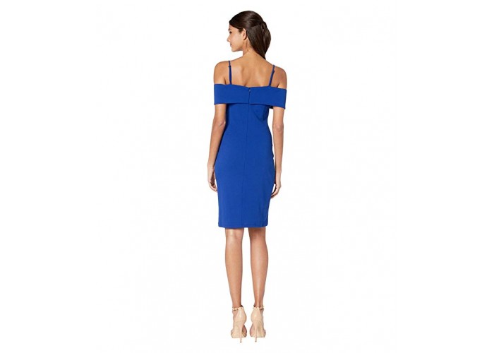 Женское силуэтное платье из плотной ткани под стрейч от популярной марки Bebe. Длина до колена, на тонких бретелях, на молнии.